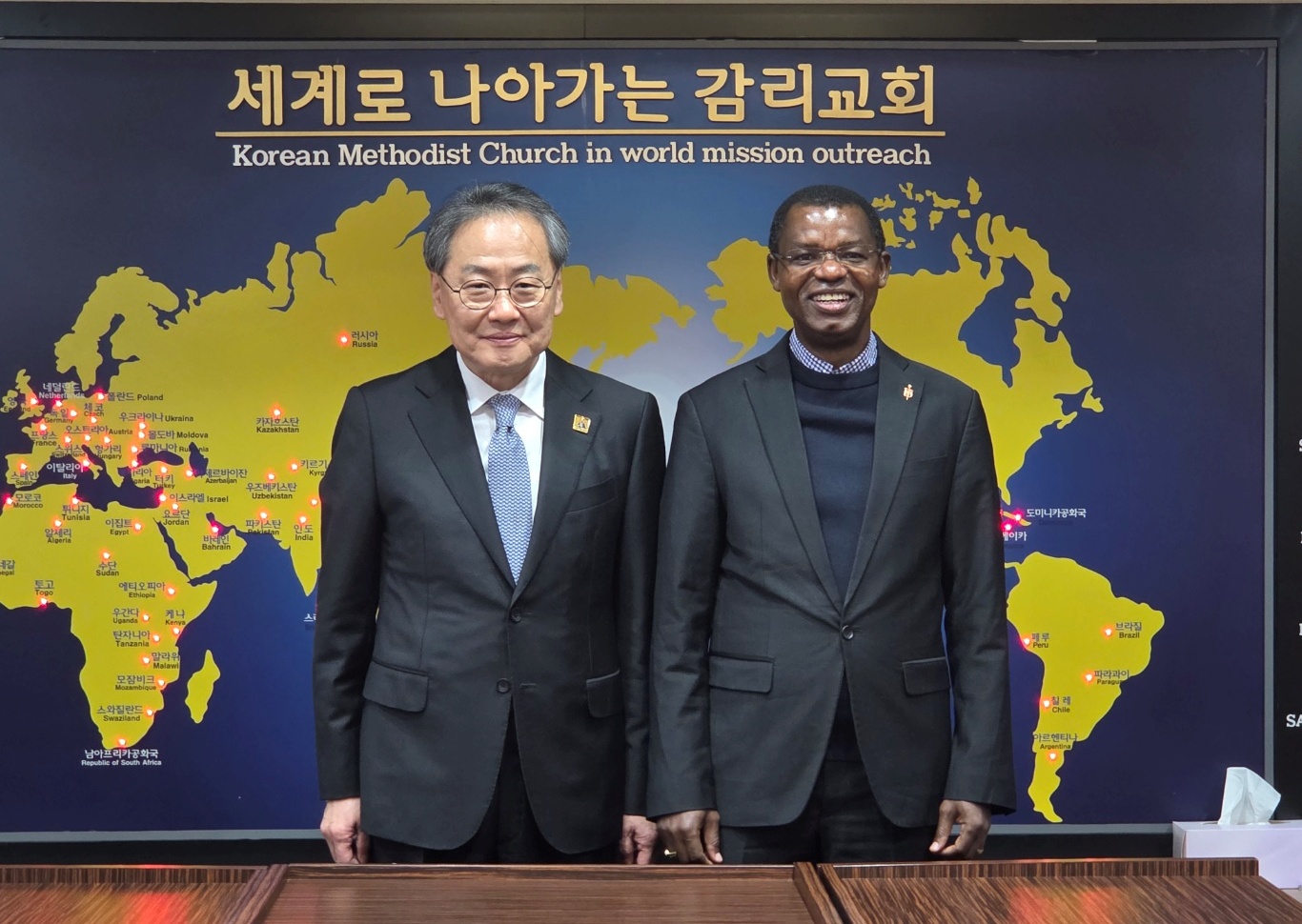 기독교대한감리회 김정석 감독회장의 ‘감리회 위상 높이기’가 계속되고 있다. 김 감독회장은 지난 4월 14일(월) 오전, 광화문에 위치한 감리회 본부를 찾은 부룬디 상원의장이자 르완다-부룬디 연합감리교회(UMC) 신호하게라(Emmanuel Sinzohagera) 감독을 만나 양 국가의 선교협력에 관해 논의했다. 이 날의 만남은 오랫동안 부룬디 선교에 열정을 다하고 있는 이성민 목사(강남성은교회/ 전 감신대 교수)가 주선한 것으로, 이성민 목사도 배석했다.