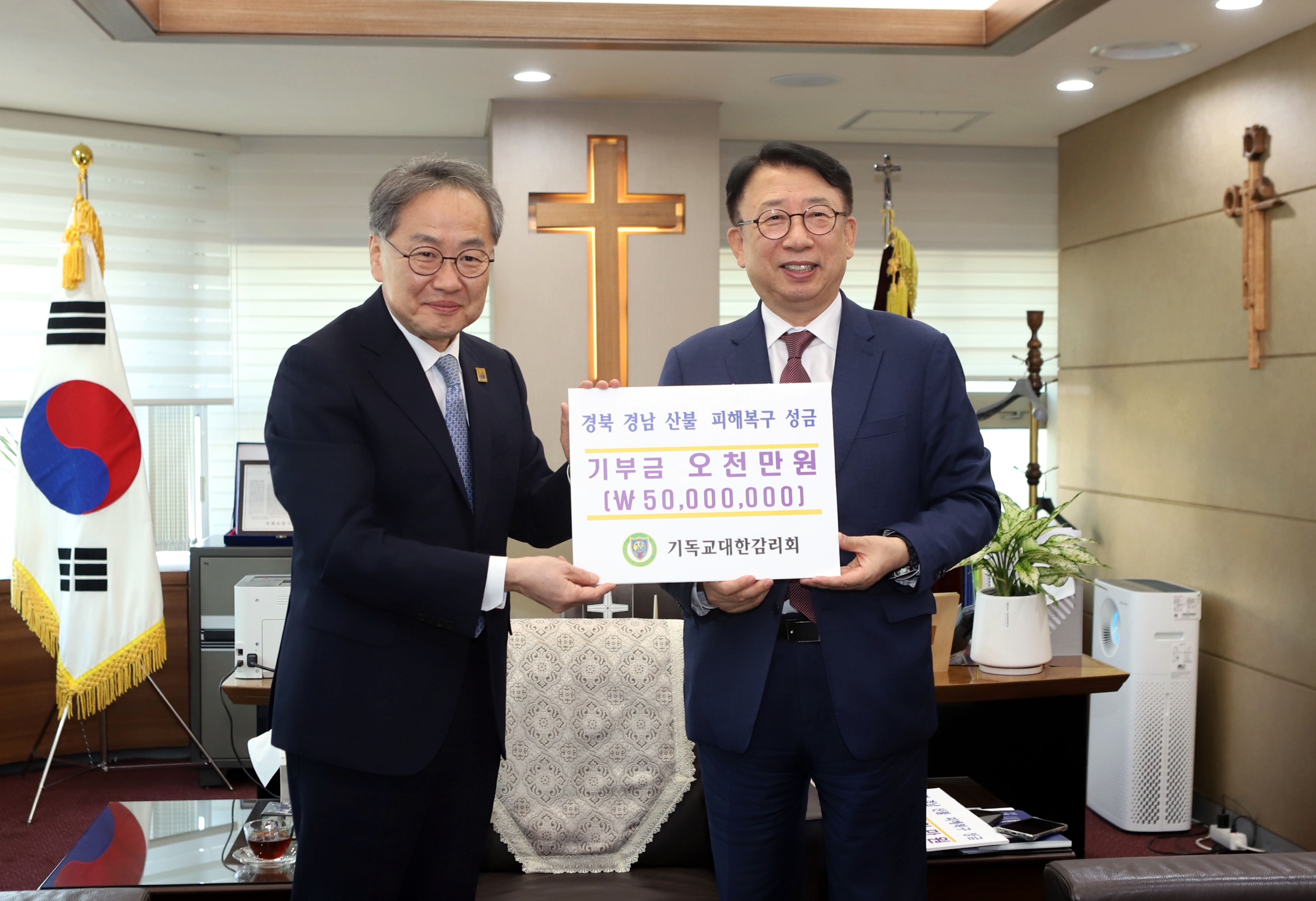 김정석 감독회장, 예장통합∙예장합동에 산불 피해 복구 성금 5천만 원씩 전달해