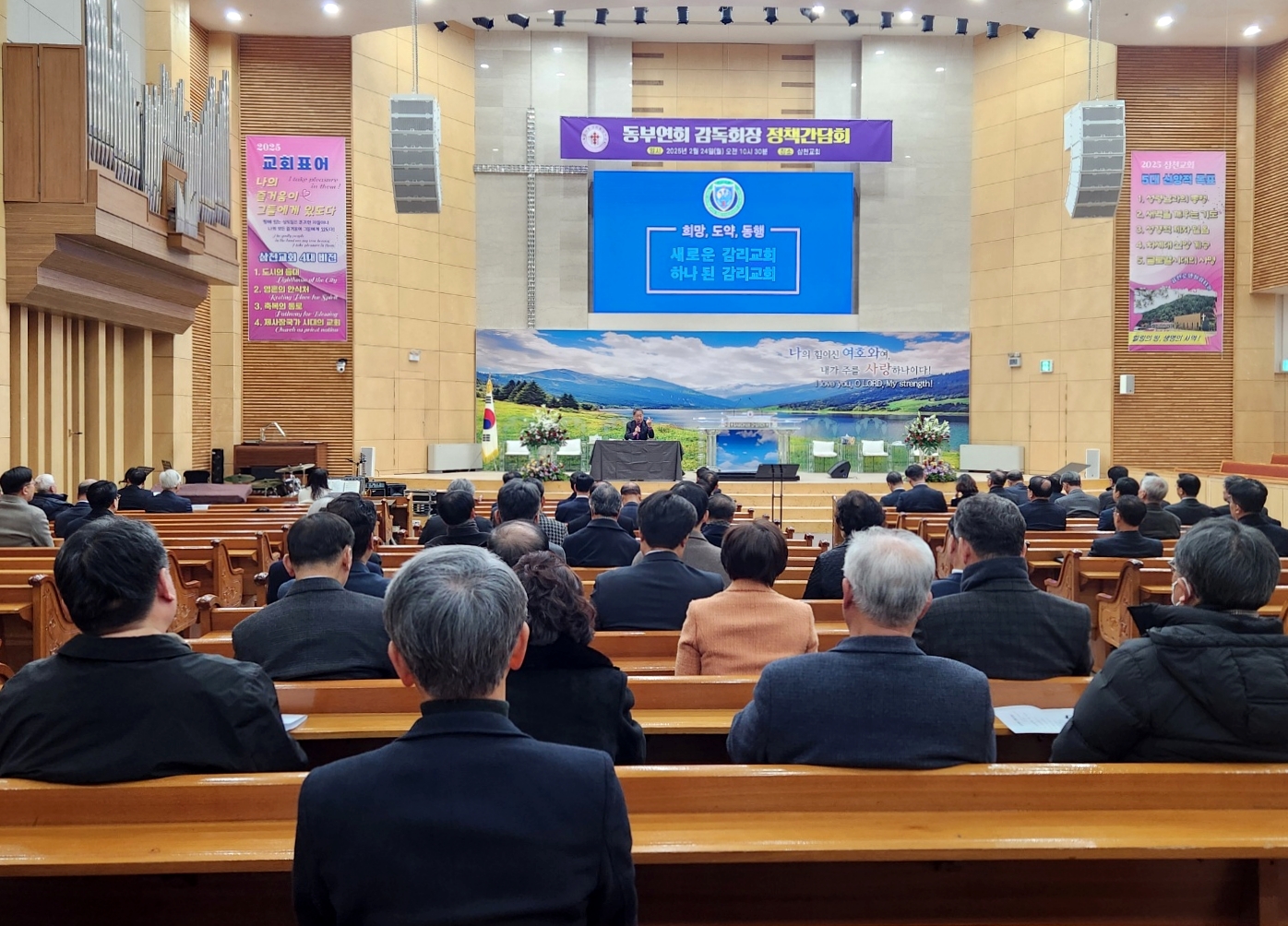 기독교대한감리회 김정석 감독회장은 2월 24일(월) 오전 10시 30분부터 12시 30분까지 원주삼천교회(우광성 감독)에서 동부연회 목회자들과 평신도 지도자들 120여 명이 모인데 가운데 간담회를 진행했다.