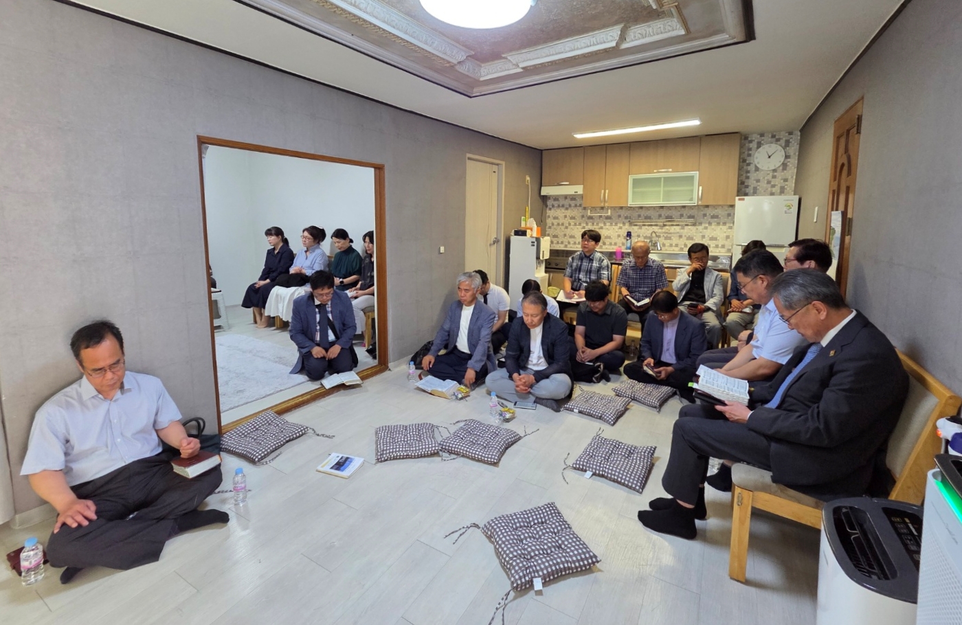약속교회(김덕영 전도사)에서 모인 이 날의 교역자회의에는 동부연회 우광성 감독이 함께해 격려의 말씀을 전했으며 한동운 감리사를 포함해 18명의 교역자들과 사모들이 참석했다. 영월지방회에는 24개의 교회가 소속돼 있고 약속교회는 미자립교회로써 2013년 10월에 창립해 올해로 12년 됐다. 예배당은 이전 담임자들이 사용하던 주택을 개조한 것으로, 방과 거실을 하나로 연결했다. 올해 초 4대 담임으로 부임한 김덕영 전도사는 복음을 향한 뜨거운 열정이 가득해 보였다. 서리 전도사로서 교역자들을 향해 메시지를 전하는 모습이 전혀 주눅들거나 당황한 기색을 보이지 않았다. 마치 오랜 목회경험을 쌓은 듯한 안정감과 열정이 묻어 났다.