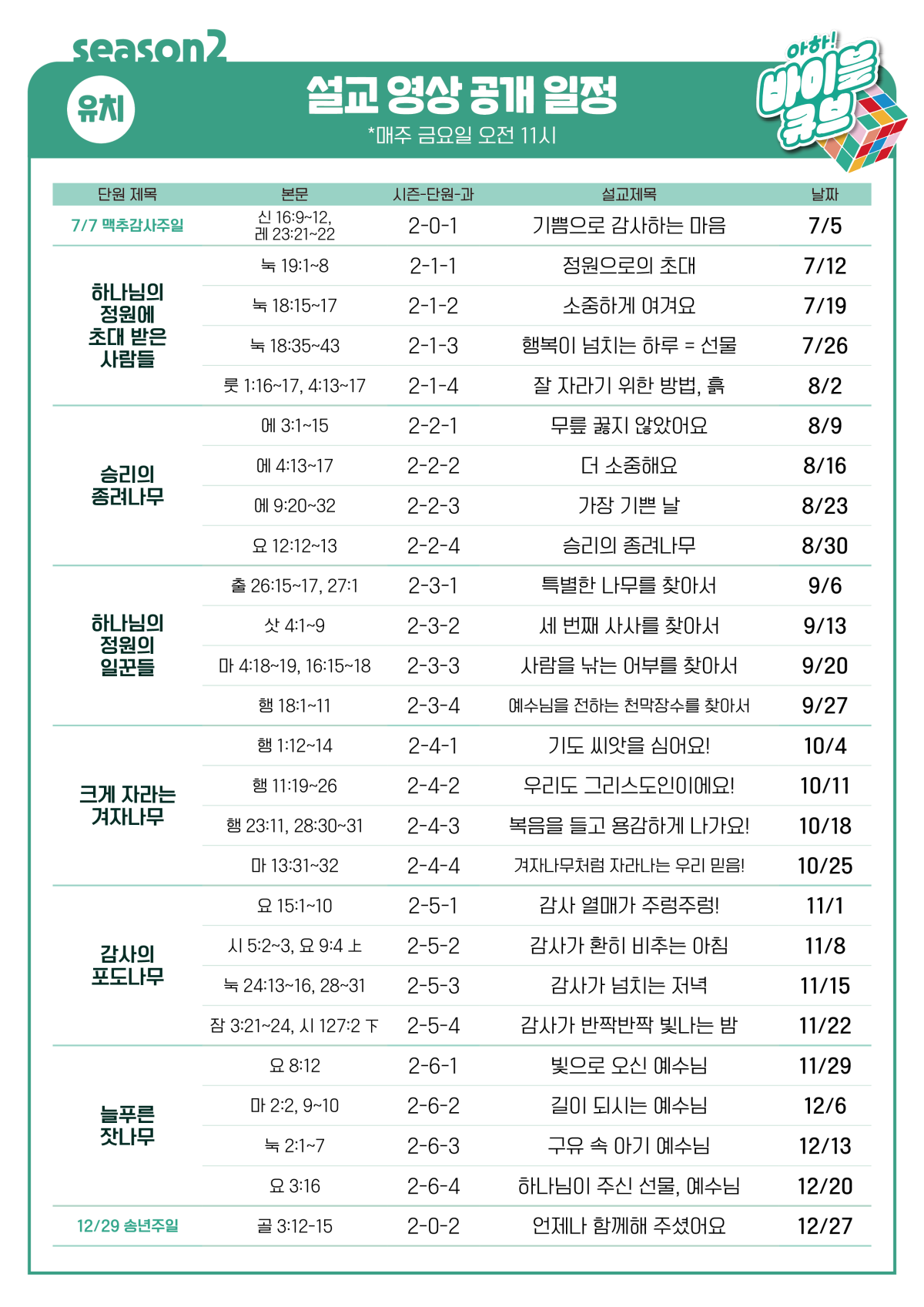 유치부 설교 영상 일정 [시즌2]