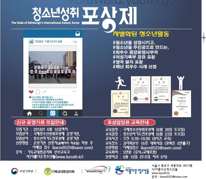 2018년 6월 청소년 포상제 신규/보수 직무연수 안내