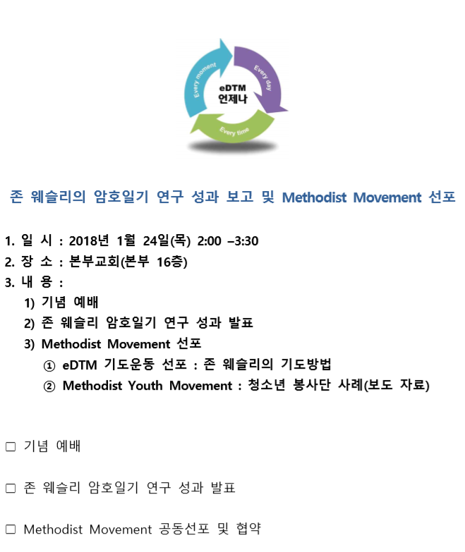 1) 2019년 1월 22일 세계 최초 존 웨슬리의 암호일기 연구보고