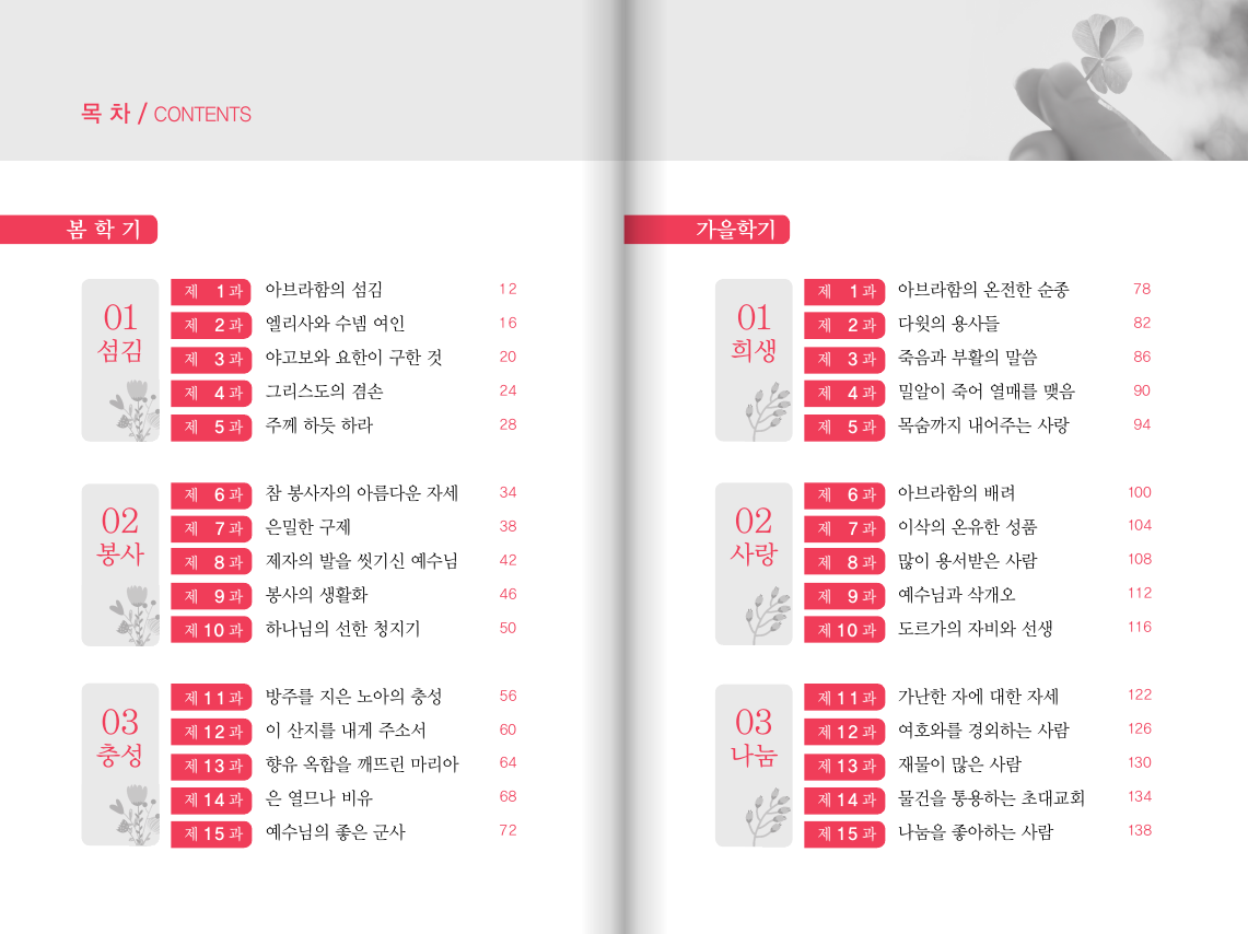 봄학기 15과, 가을학기 15과 총30주로 구성되어 있습니다.