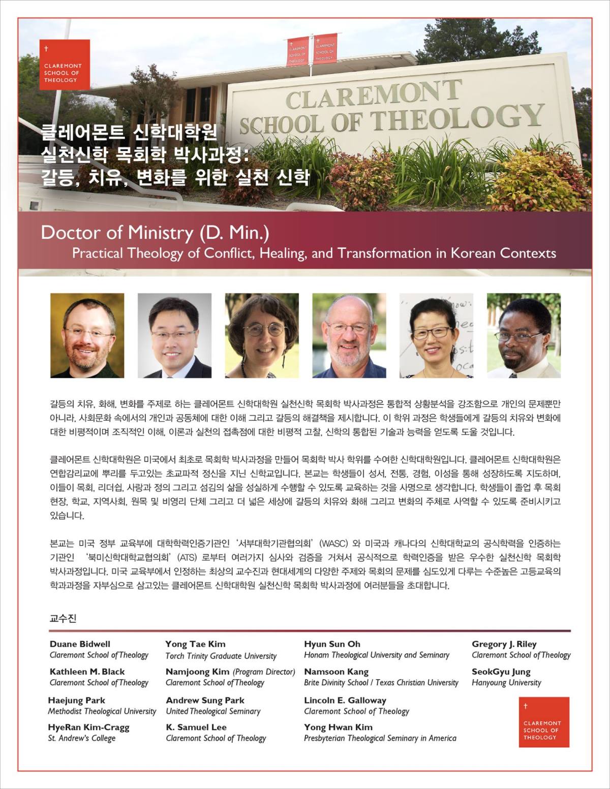 Please apply for Doctor of Ministry Degree Program in Practical Theology of Conflict, Healing, and Transformation in Korean & Korean-American Contexts at Claremont School of Theology in the City of Claremont, California