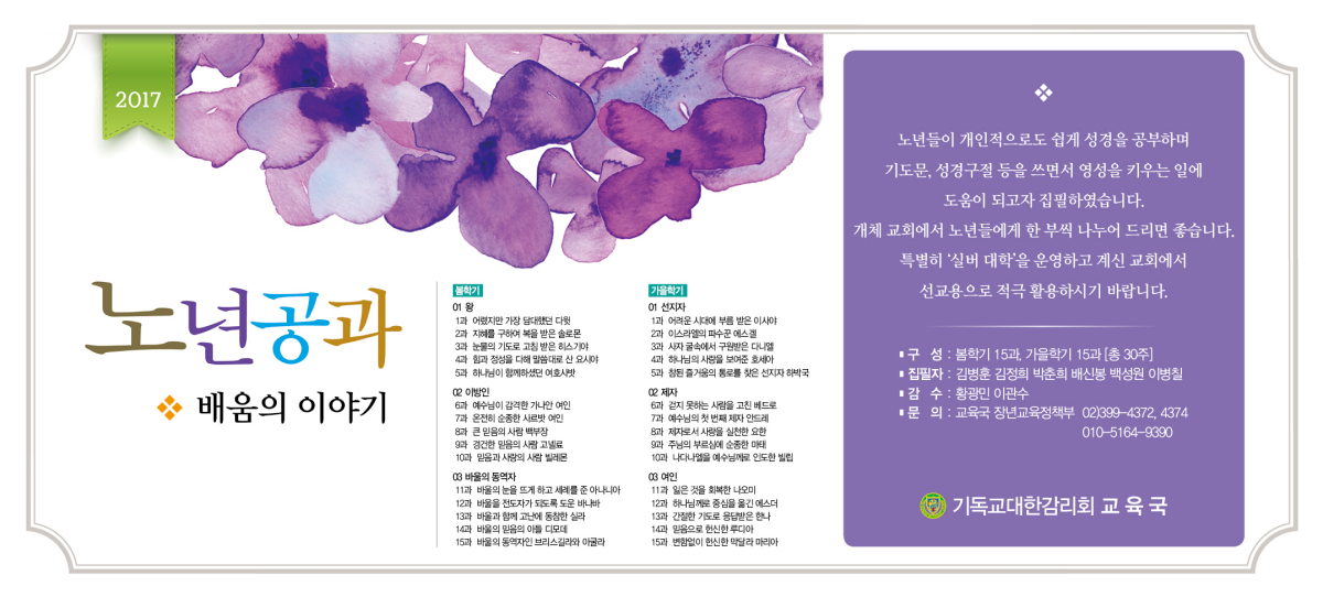 '개체 교회' 특별히 '실버대학'을 운영하고 계신 교회에서 적극 활용 하시기 바랍니다.
