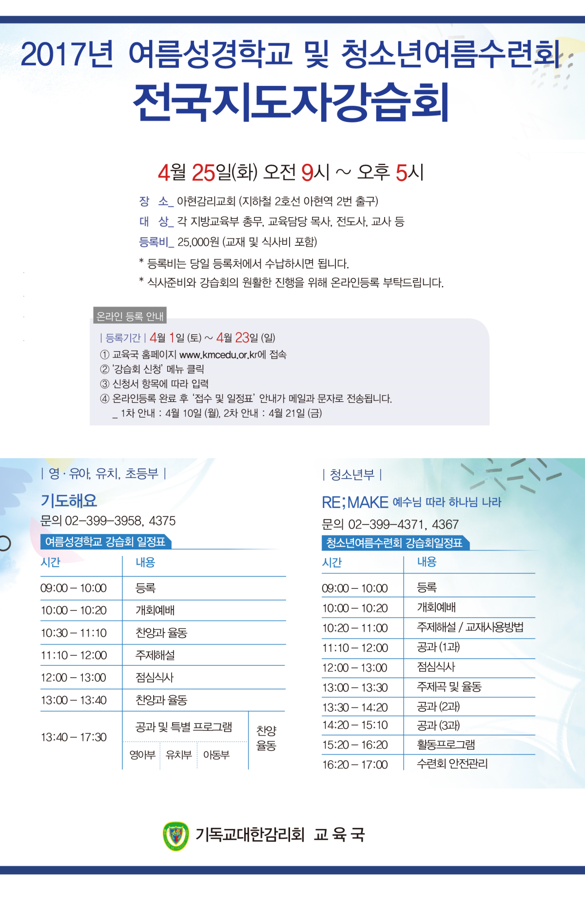 2017 여름성경학교, 청소년수련회 전국지도자강습회