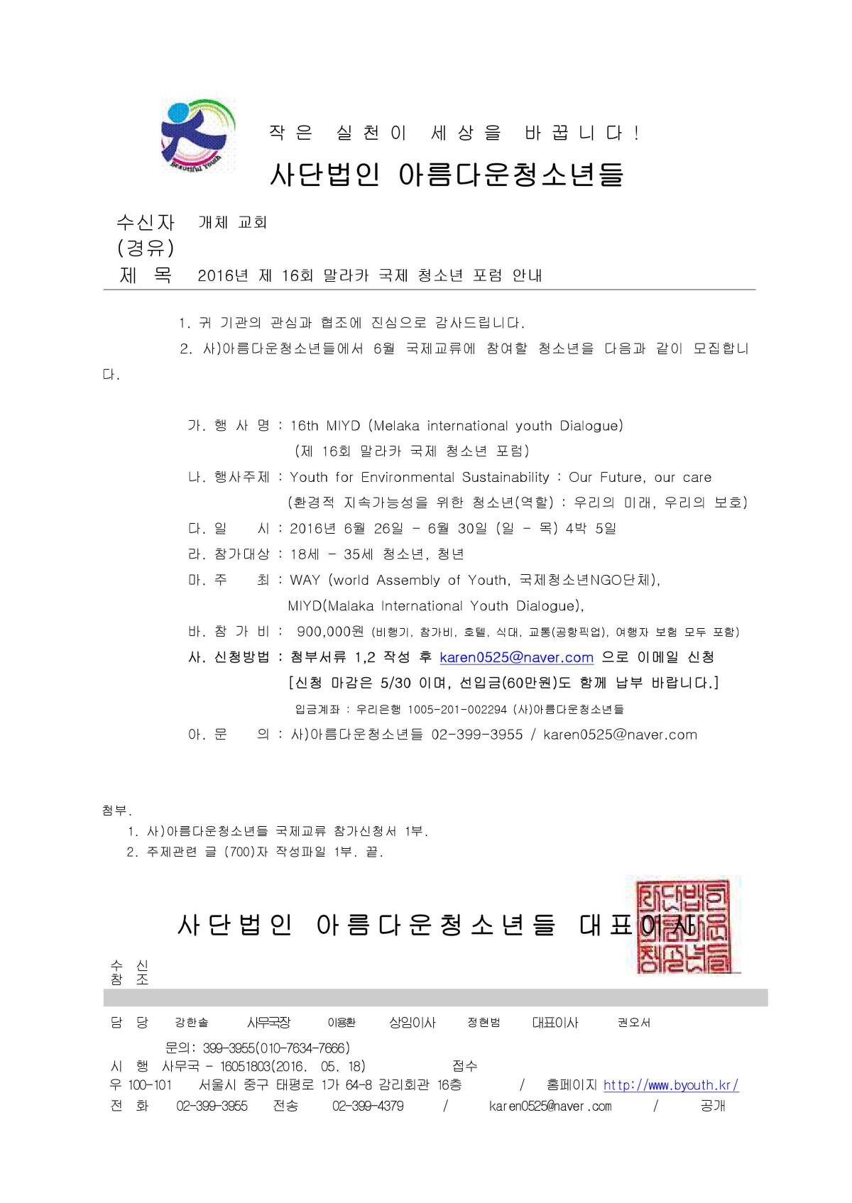 제16회 말라카 국제청소년포럼 안내