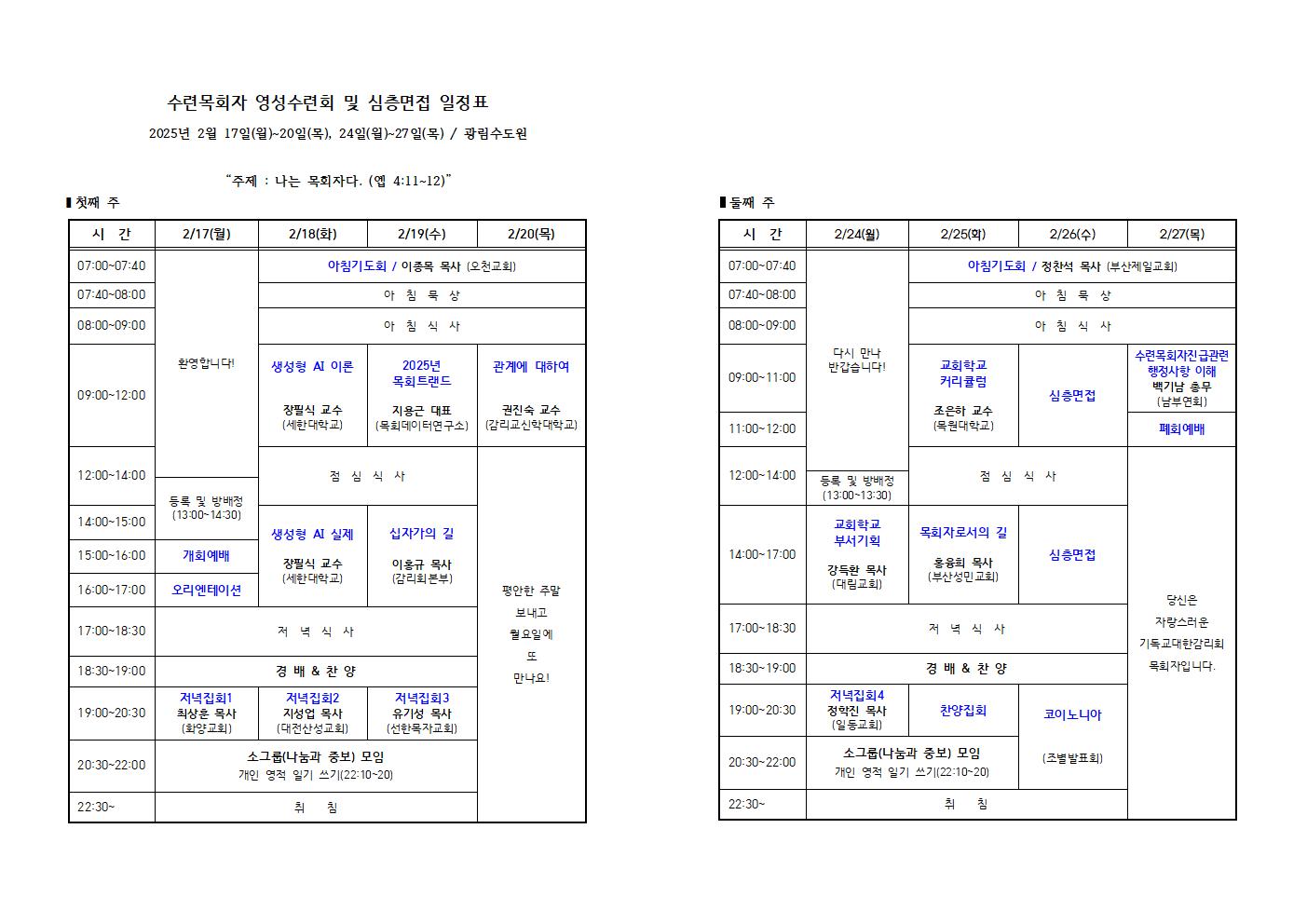 1) 영성수련회도 수련목회자 선발고시 과정중이며 심층면접까지 통과하셔야 최종 합격생입니다.