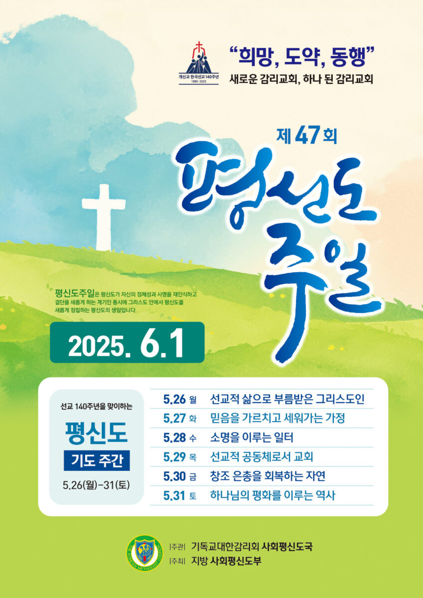 올해도 모든 감리교회가 하나 되어 평신도주일을 성수함으로, 평신도들이 교회의 중심에서 믿음의 열매를 맺고 세상을 변화시키는 주님의 일꾼으로 우뚝 설 수 있도록 함께 힘써 주시길 부탁드립니다.