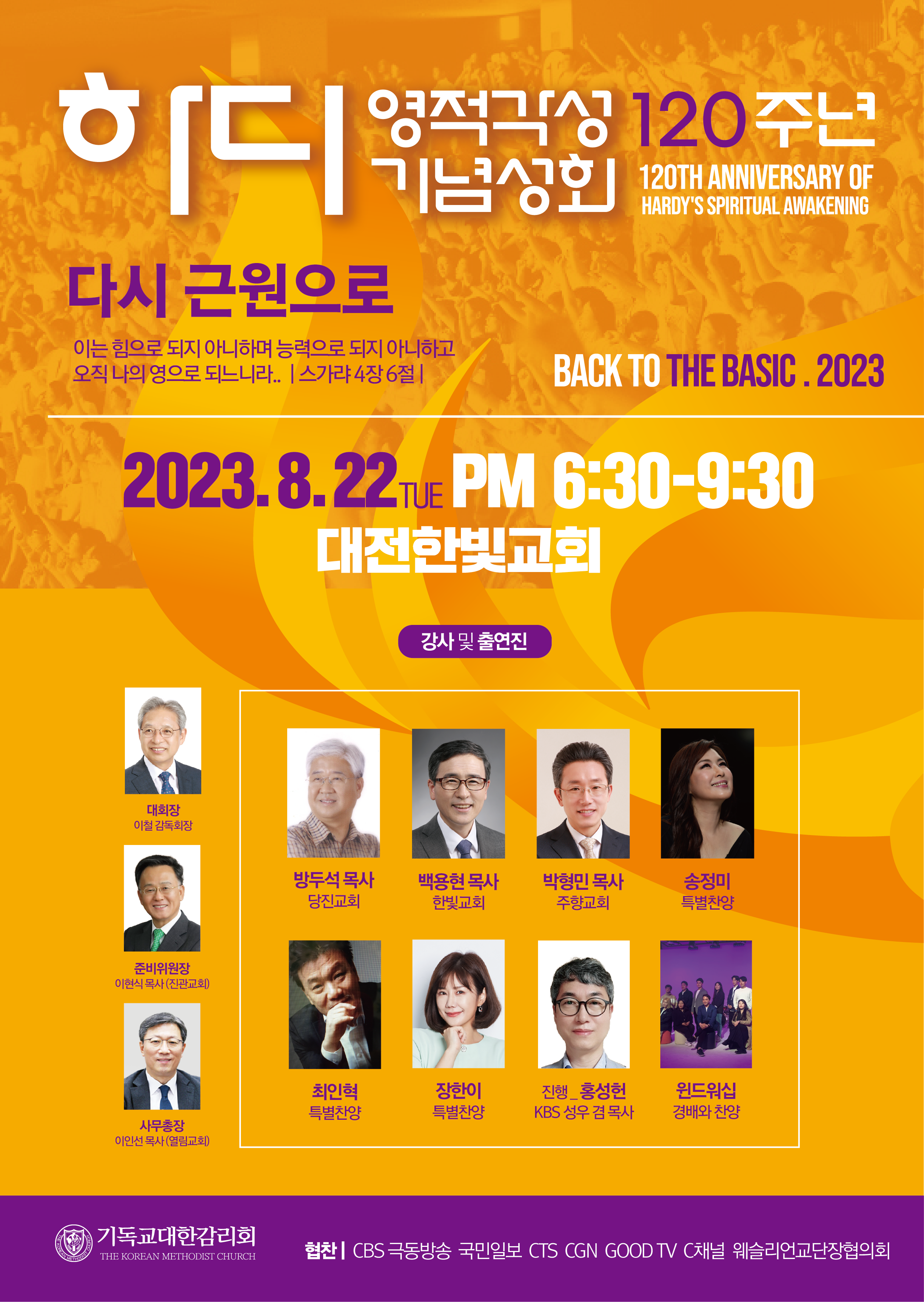 하디 영적각성 120주년 기념대회(권역별 기념성회) 대전한빛교회 포스터를 첨부파일로 올립니다. 자유롭게 다운로드하여 사용하실 수 있습니다.