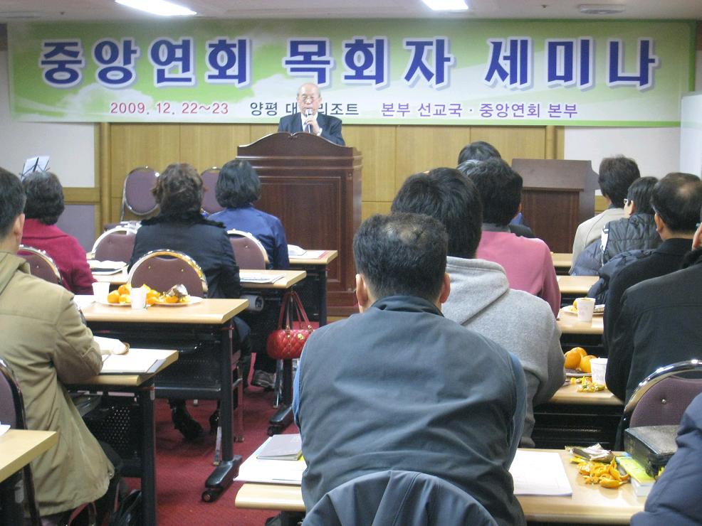 지난 12월 22-23일 양평 대명리조트에서 중앙연회 미자립교회세미나가 선교국 주최, 중앙연회 주관으로 열렸다. 30명이 참여한 본 세미나에는 설교강사로 중앙연회 정승희감독, 김진호 전 감독회장, 이원재 선교국총무, 불꽃교회 전용재목사 등이 참여하였고, 특강에는 주산교회 최재영목사, 초계중앙교회 이진용전도사, 태동화국내선교부장 등이 참여하였다. 본 세미나는 실제적으로 미자립교회에서 시행할 수 있는 사역과 목회에 도전이 되는 내용들로 진행되어 참석한 목회자들에게 좋은 반응을 얻었다. 중앙연회 총무 최재화목사의 사회로 진행된 개회예배에는 정승희감독의 설교에 이어 의정부제일교회 윤형로목사의 격려사 시간도 있었다.