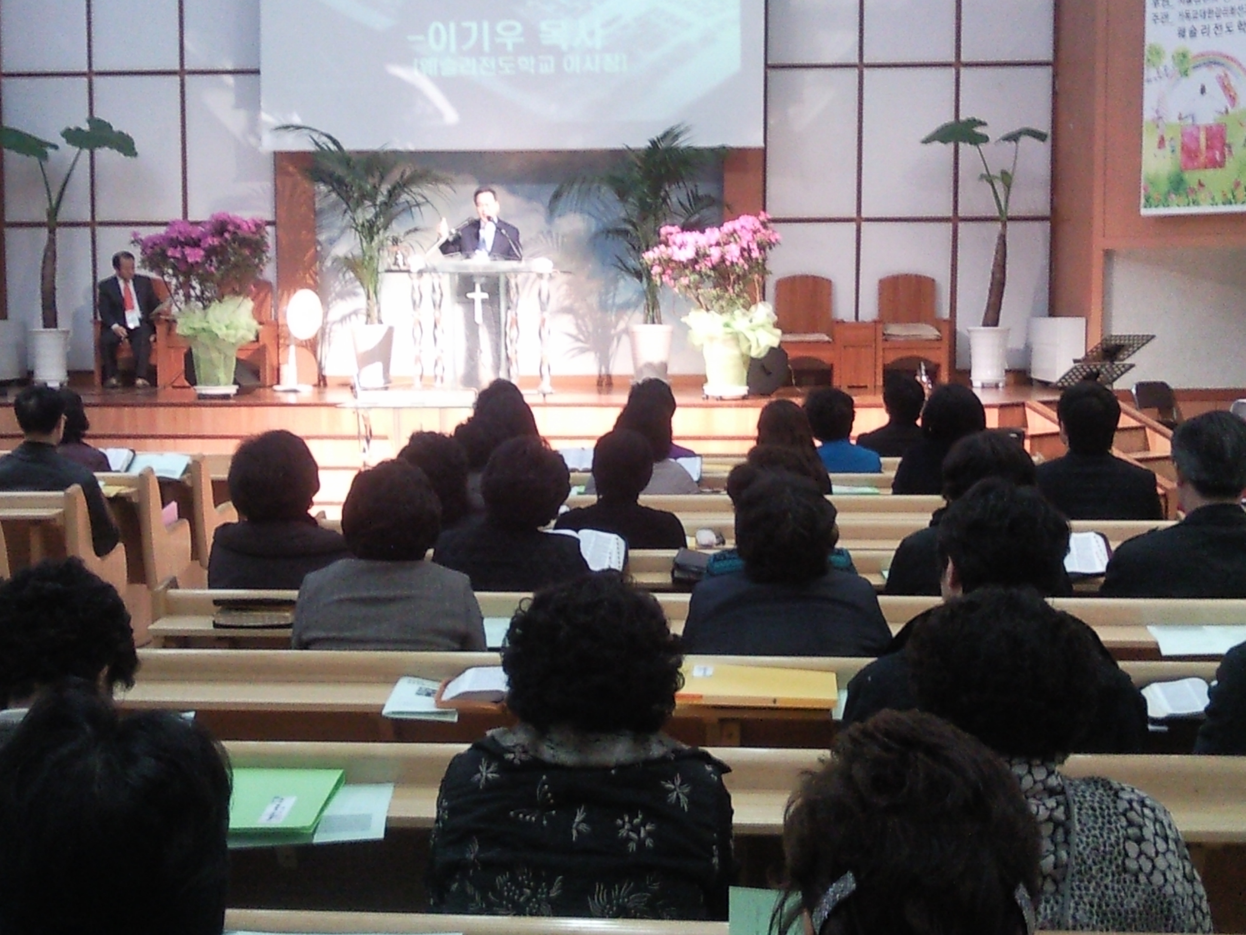 현재 두 곳 모두 개강 후 2주차를 맞이하게 된다. 사진은 성현교회의 개회예배로 이사장인 이기우목사의 설교모습이다.