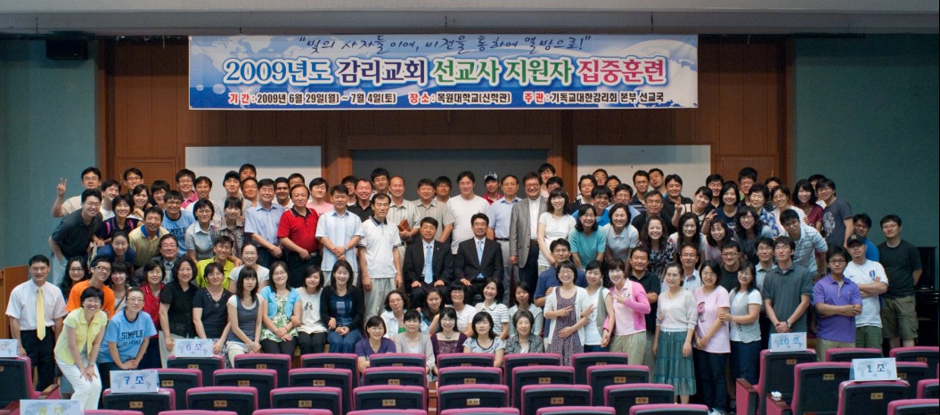2009년도 선교사 지원자 집중훈련이 2009년 6월 29일(월) ~ 7월 4일(토), 목원대학교 신학관에서 개최되었다. 금번 집중훈련은 “빛의 사자들이여, 비젼을 통하여 열방으로!”라는 주제로 2009년도 선교사 인준지원자를 대상으로 본부 선교국 실무자와 자원봉사자를 포함하여 125명이 참여하였다. 이번 훈련은 감리교회 선교사관리규정에 따른 선교행정교육, 선교영성, 선교 공동체 훈련 및 섬김과 봉사정신 함양 등을 목적하여 개회예배(박영태 감독)를 필두로 수료예배(이원재총무)에 이르기 까지 영성집회(박보영목사, 윤석일목사, 이승호목사, 지성업목사)과 특강(선교행정교육-김영주목사, 해외기획부선교정책-한미령목사, 멤버케어 선교사의 마음과 돌봄-엄은정선교사, 선교현황과 남은과업-조명순원장, 선교사의 정체성과 자기돌봄-김도봉목사, 초기선교사의 생활과 사역-김진홍목사, 선교사와 연회행정-이상훈목사, 선교사의 위기관리-김영주목사), 그리고 지역연구(서남아시아-김대균선교사, 오세아니아-김종호목사) 등으로 일정이 진행되었다. 또한 체육대회와 지역별 결단의 시간(한만경목사)을 통하여 지원자들의 신체상의 건강과 선교 소명의식을 고취하기도 하였다.
