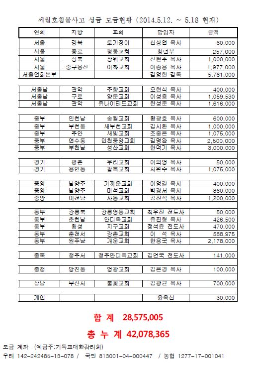 세월호 침몰사고돕기 성금 현황3(~5.18)