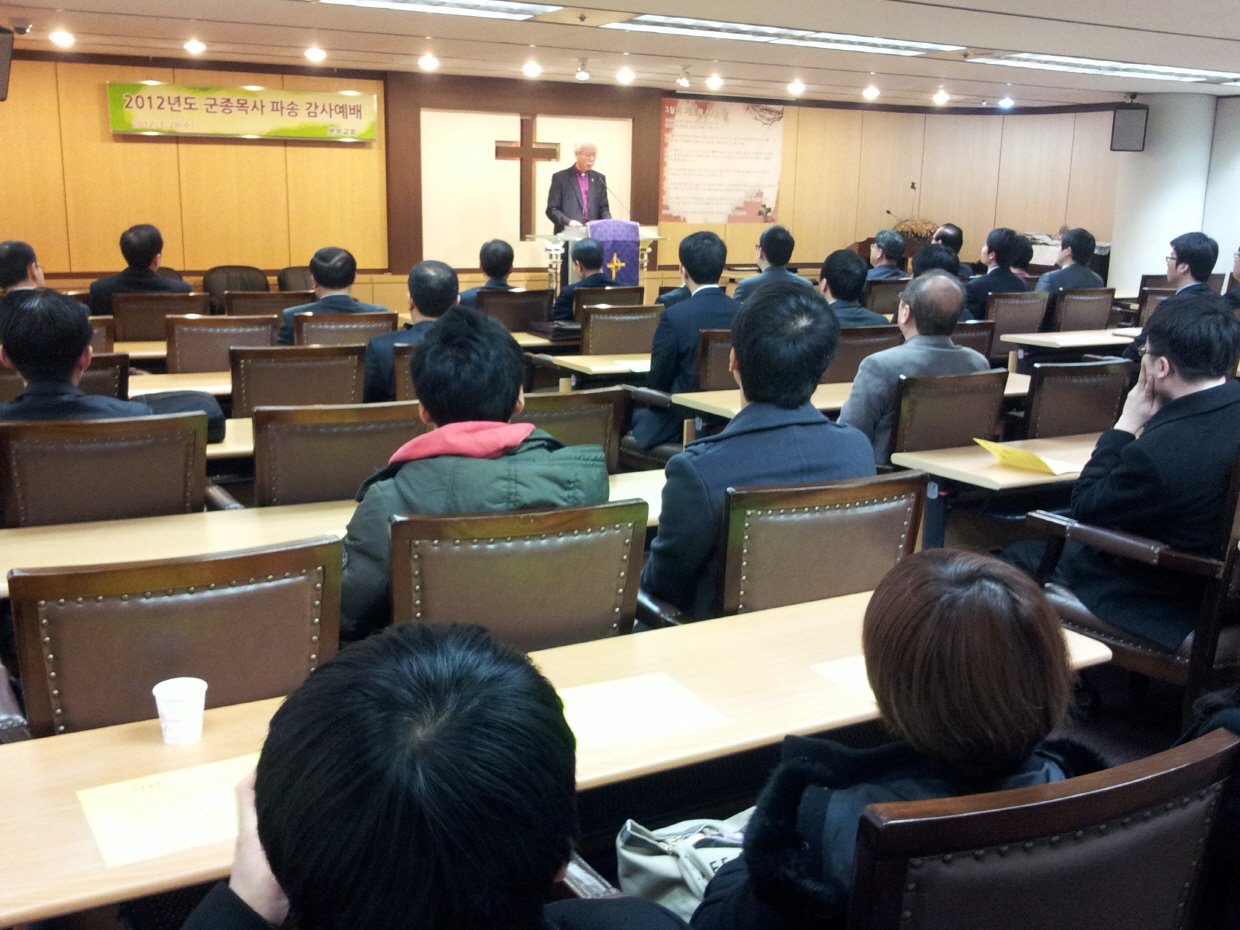 예배는 권오현감독의 복음을 위탁받은자라는 설교와 박종규목사의 기도, 최이우목사의 축사, 원성웅목사의 격려사, 박상칠목사의 축도로 진행되었다. 금년도 임관자는 최은수목사를 비롯한 12명이며 이들은 충북 괴산의 중앙군사학교에서 9주의 교육을 마친 후 임관하여 전방 각 부대로 배치될 예정이다. 이들을 위하여 여선교회전국연합회와 각 파송연회에서 후원, 격려하였다.
