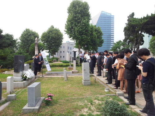선교관 2층에서 양화진 묘원에 관한 실무자의 브리핑이 있은 후 묘역에서 드려진 예배에는