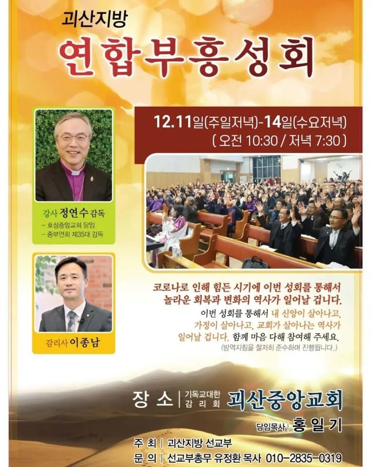 코로나로 인해 괴산지방 부흥성회가 3년 만에 열렸다. 강사는 정연수 감독님