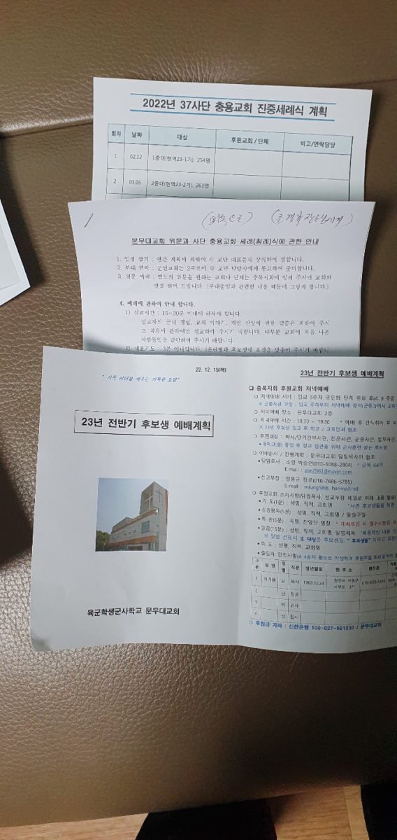 2023년 군 선교회 충북지회 군 선교 위문과 세례식 준비를 위해서
