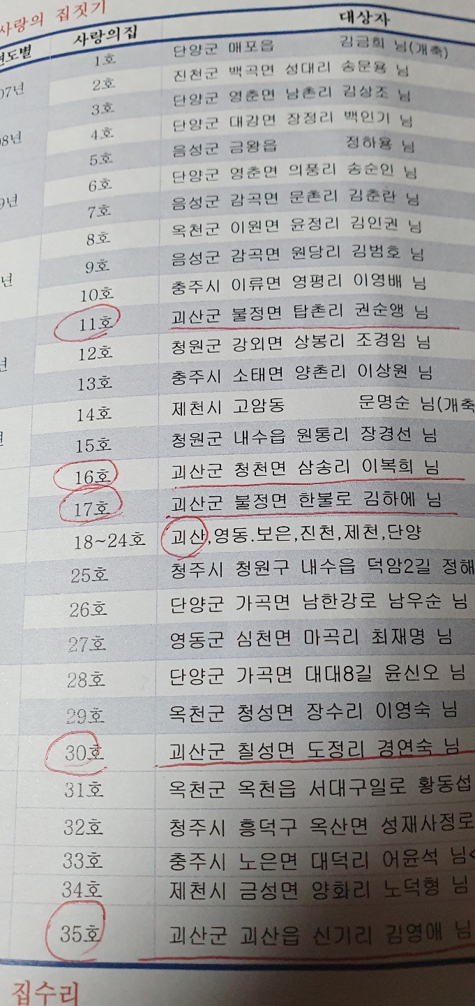 우리 괴산군에 사랑의 집짓기가 6번째 지어지고 있다.