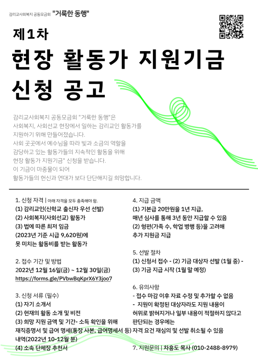 감리교사회복지 공동모금회 '거룩한 동행' | 제1차 현장 활동가 지원 기금 신청 공고