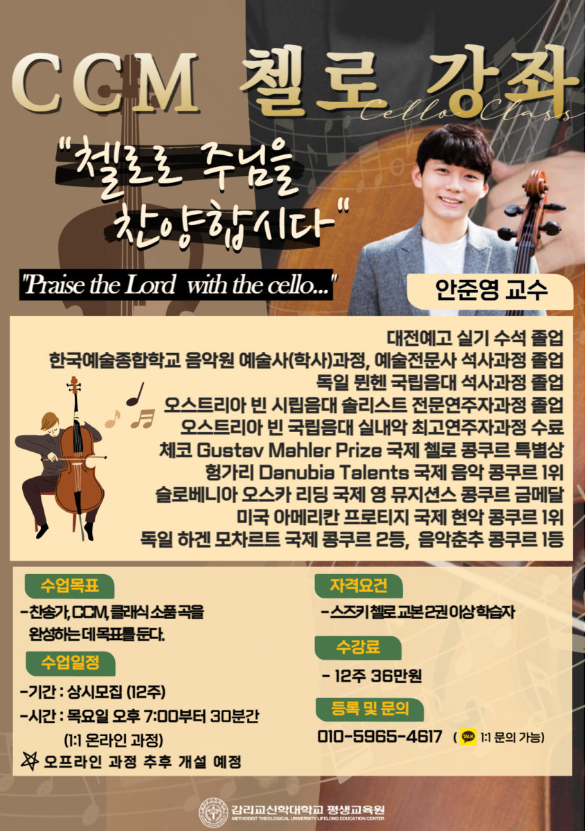 CCM 첼로강좌 신규 개설 안내 (감신대 평생교육원)