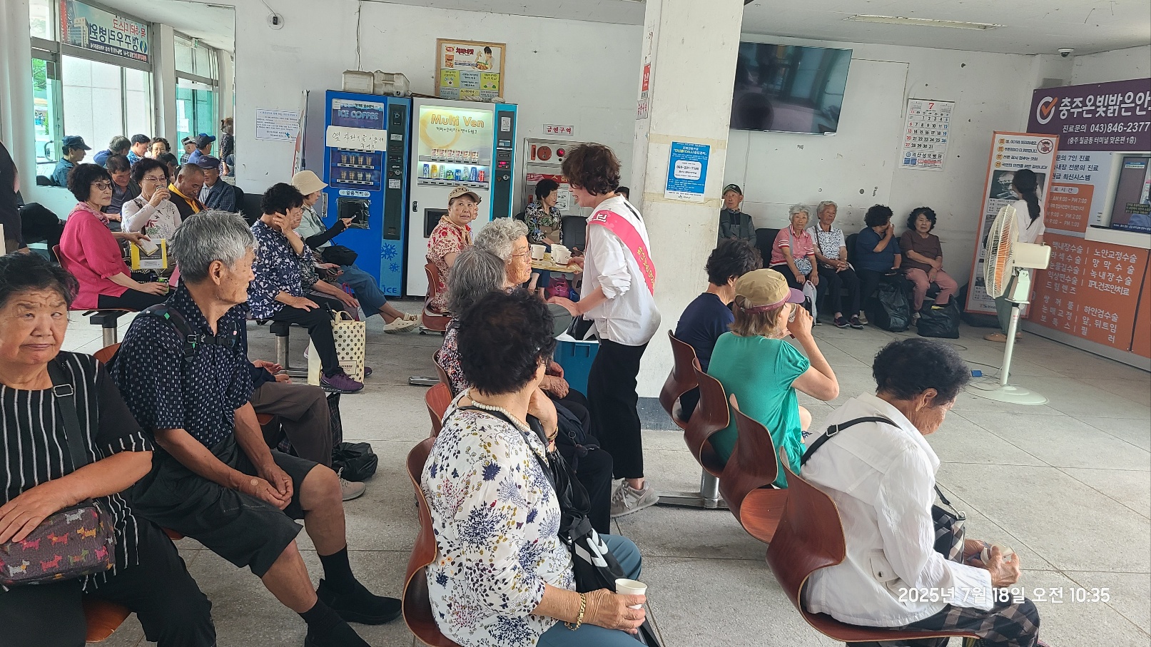 시내버스 터미널과 괴산 장터에서 열심히 전도 했습니다.