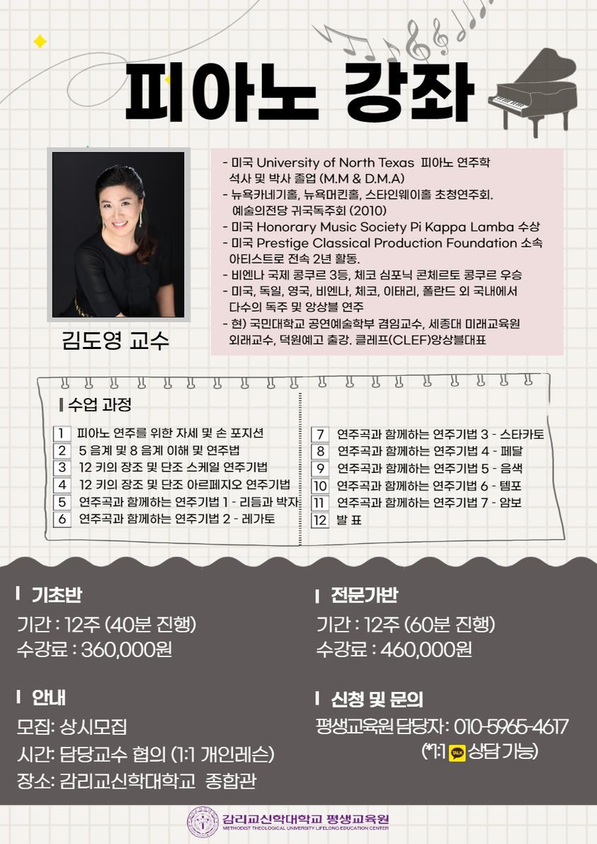피아노 강좌 개강안내 (감리교신학대 평생교육원)
