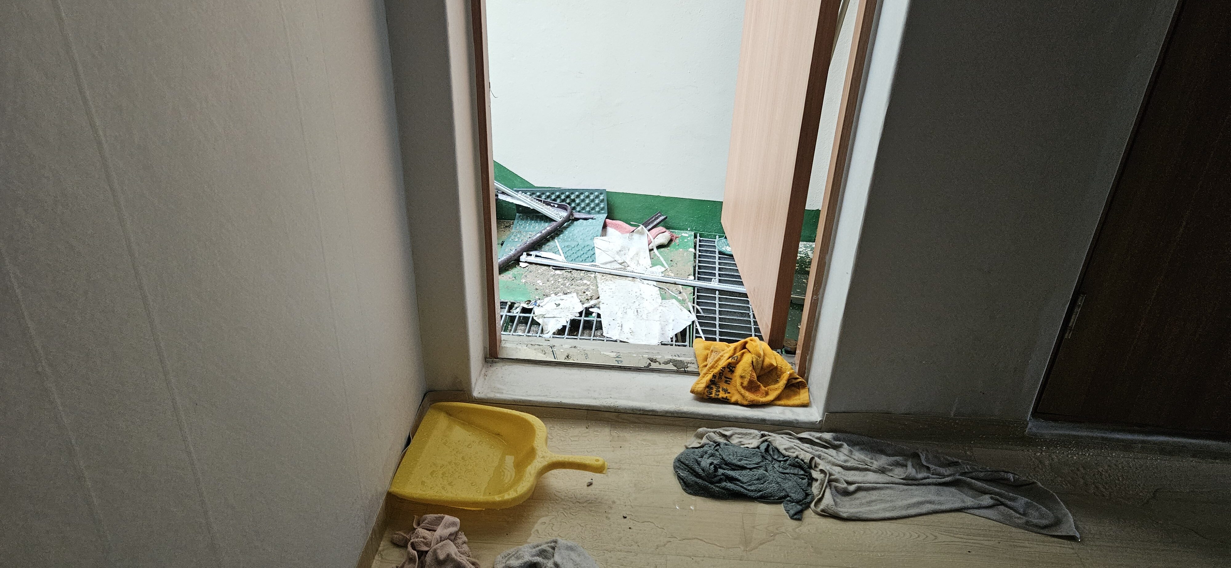 물탱크가 작은 구멍이 나서 터져서 무리 넘친 것입니다.