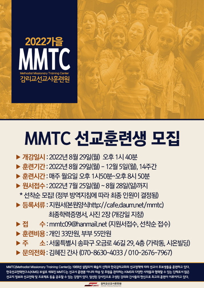 감리교선교사훈련원(MMTC) 2022년도 가을학기(1학기) 훈련안내