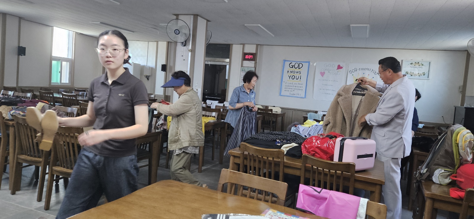 이번 제5 여 선교회서 가방 신발 그리고 옷 나눔 바자회를