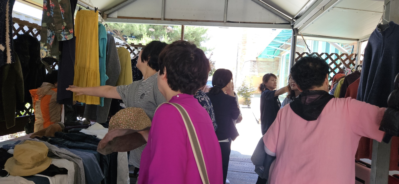 오늘 바자회 하는 팀 격려하고 성가대 기도 해 주고