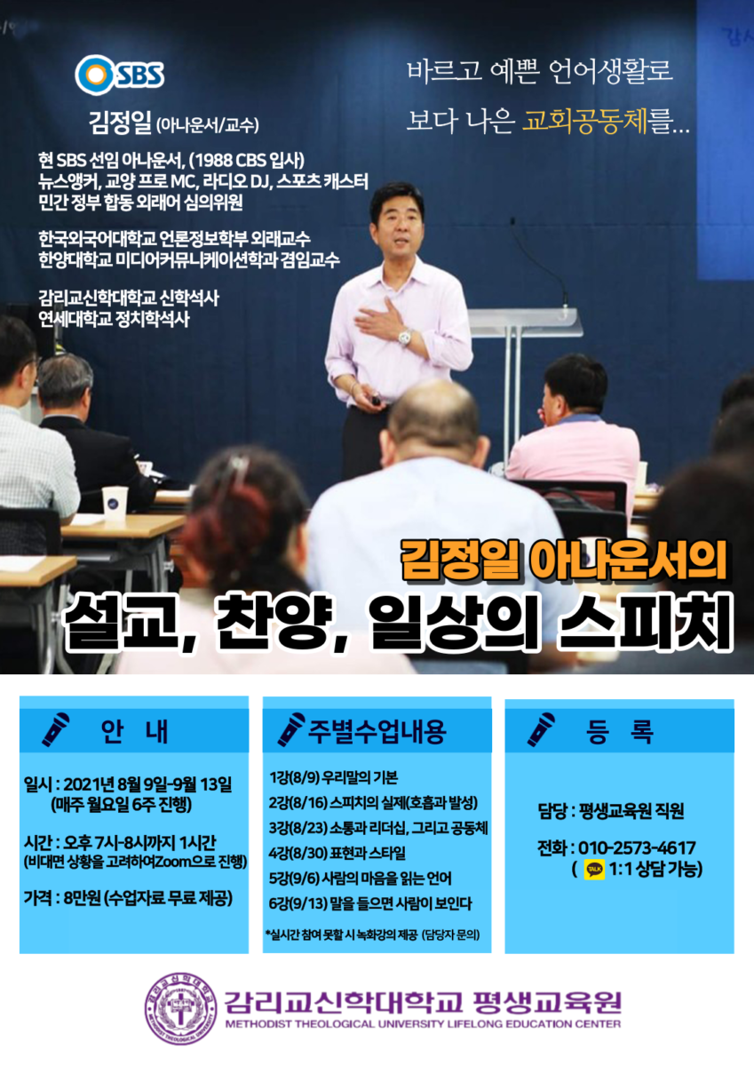 SBS김정일아나운서의 설교, 찬양, 일상의 스피치 강좌 (6주 8만-감신대 평생교육원)