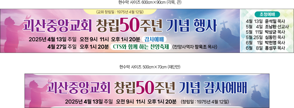 괴산 중앙교회 창립 50주년 행사 준비 현수막