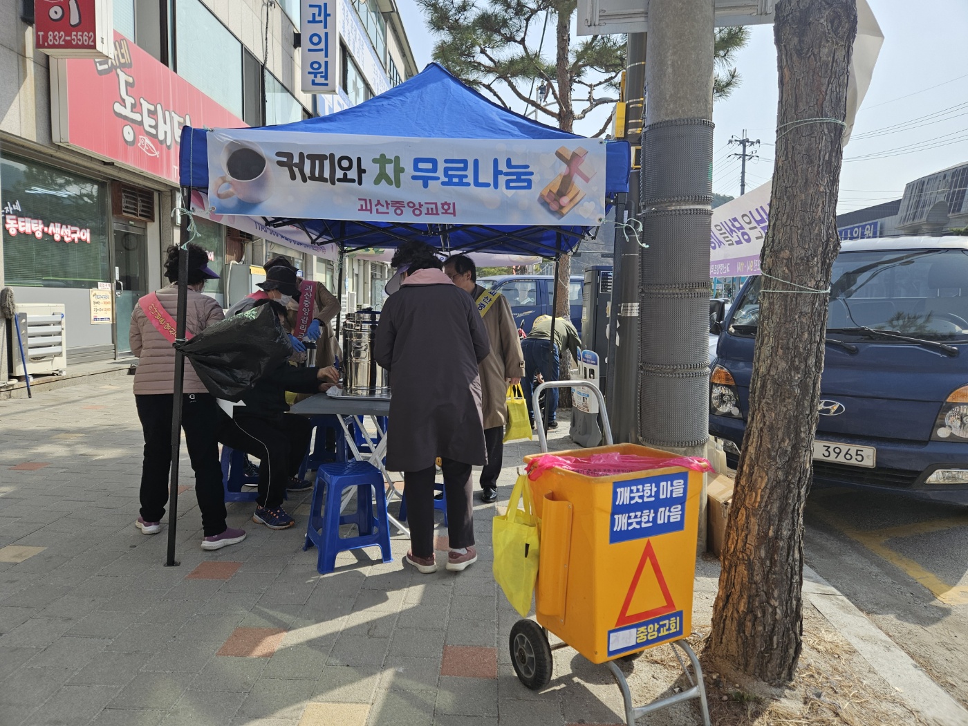 드리고 또 거리에 쓰레기를 주우며 전도 합니다.