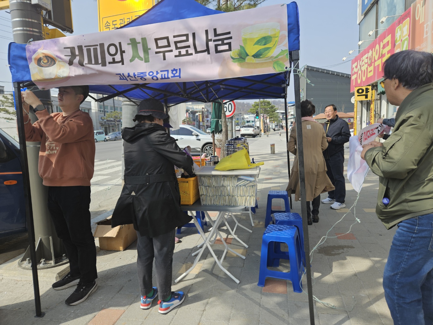 커피와 돼지 감자 차를 드리고 전도지와 전도 용품을 챙겨