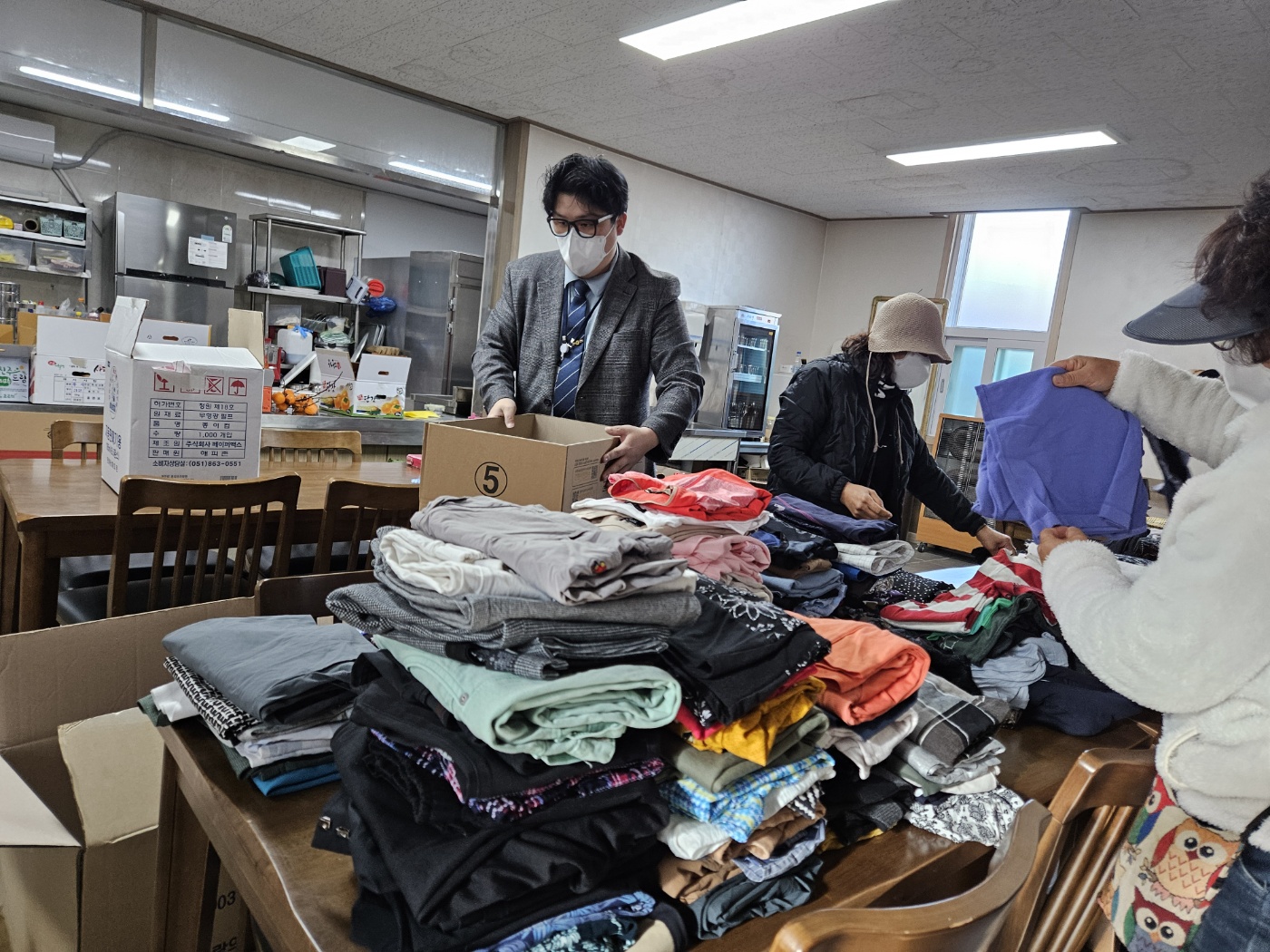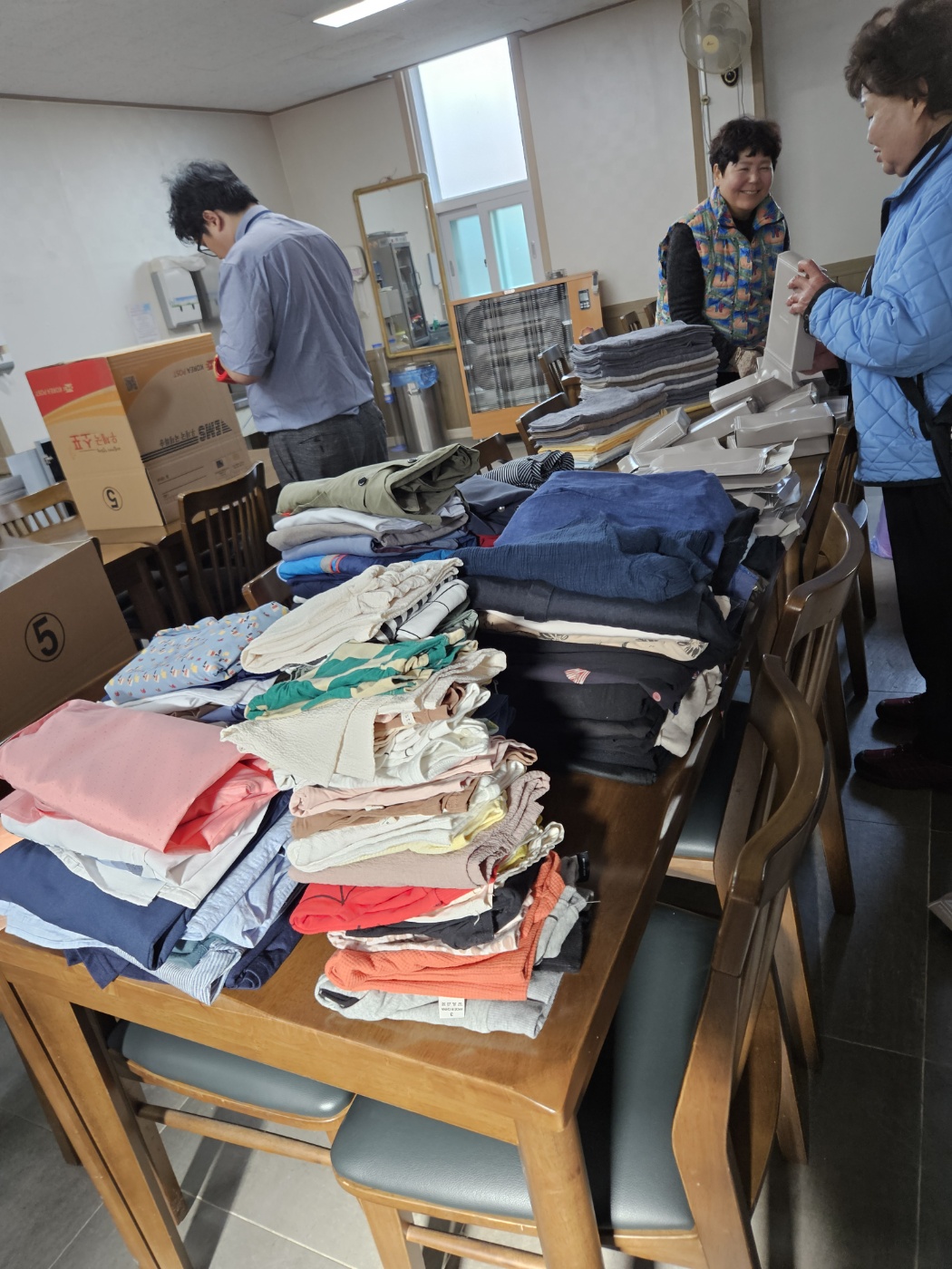 요즘은 선물보내기 합니다. 수건이 250장 옷이 500장 학용품등