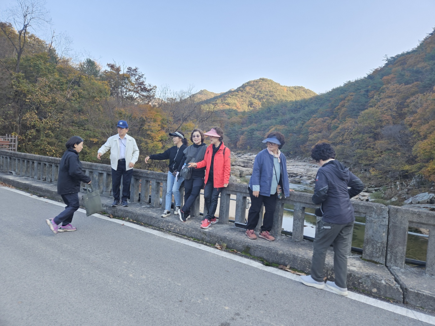 오후 예배 후에 괴산의 화양 구곡 걷기를 하고 문회 해설사 권사님 해설을 들으며