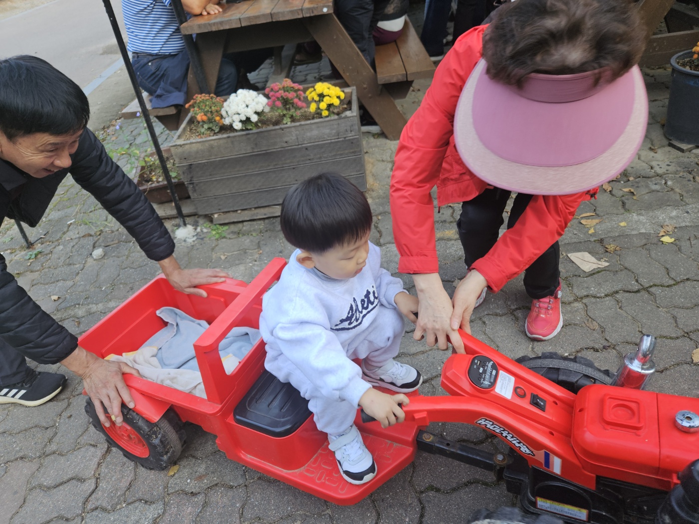 하고 마쳤다. 손자가 와서 함께 걸었다.