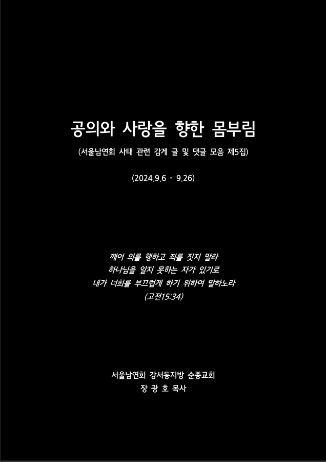그동안 2018년 11월부터 감게에 올린 글 230여개와 감리교도들의 댓글을 함께 엮어 정리해왔는데, 총 5집 1,700여 페이지가 넘는다. 이 글들이 후일 감리교회사를 정리할 누구에겐가 자그마한 도움이라도 되었으면 하는 바람이다.