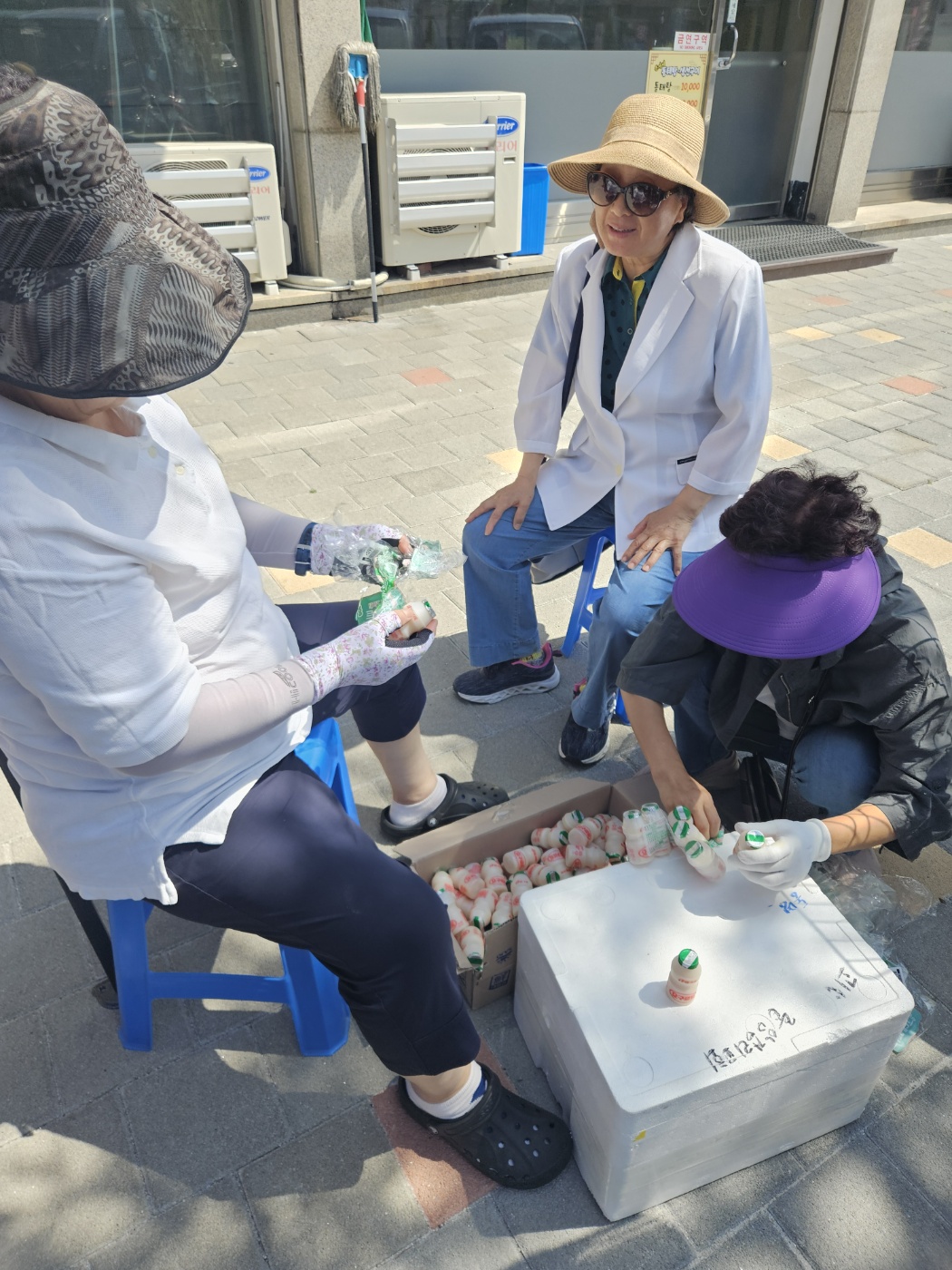그래도 전도 대원들이 나와서 냉 커피 냉 매실차