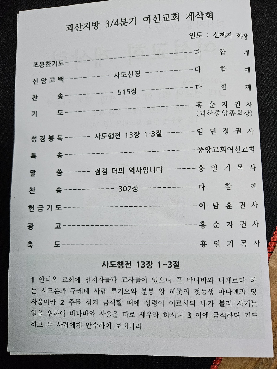 지방 18개 교회 중심 교회인 우리 교회에서 계삭회