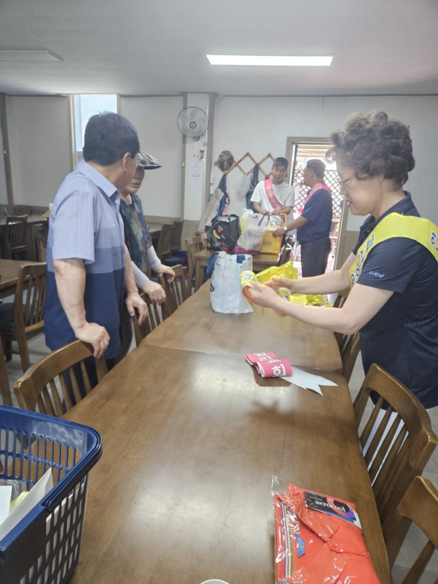 교인들이 있는 동네 전도 시원한 음료수 수박도 준비 해 놓고