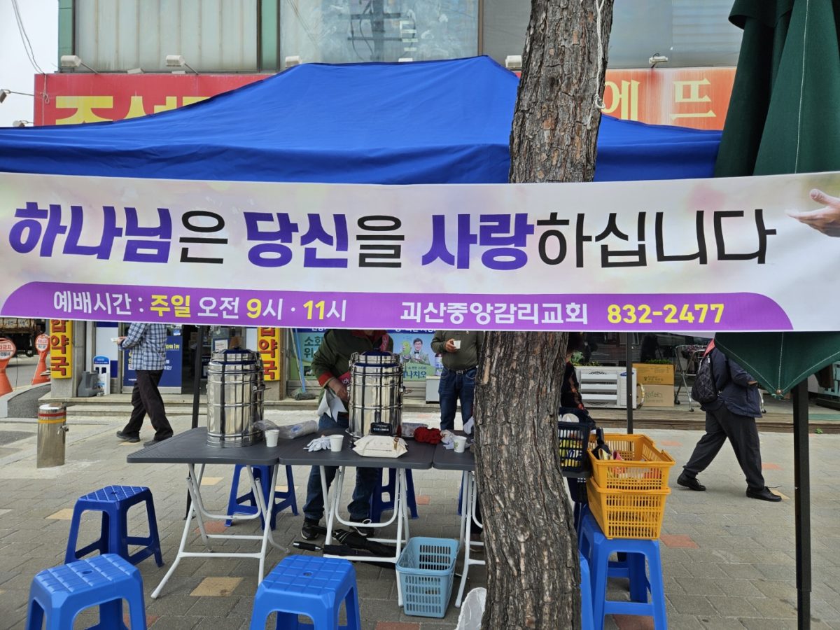우리 교회 장로님 식사 대접하고 근처 쓰레기 주으며 열심히 전도 했다.