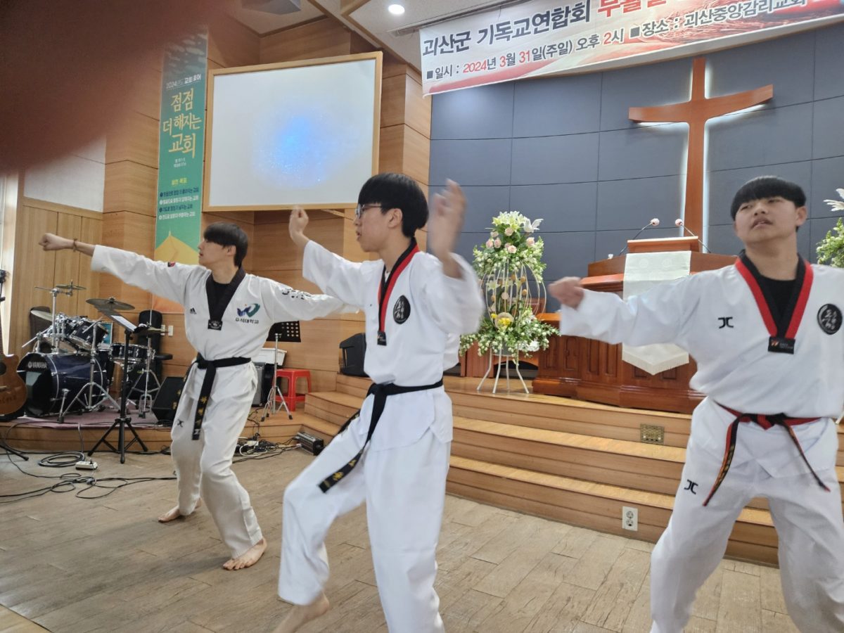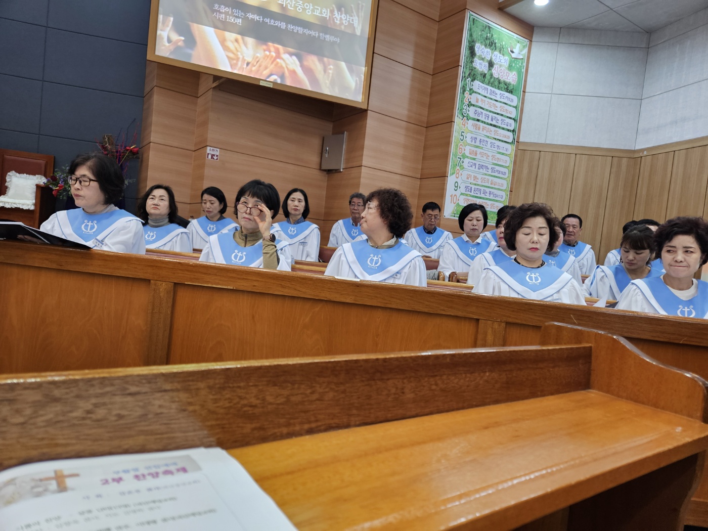 우리 교회도 준비 찬양 성가대 찬양 축도 그리고 2부 사회 그리고 태권무도