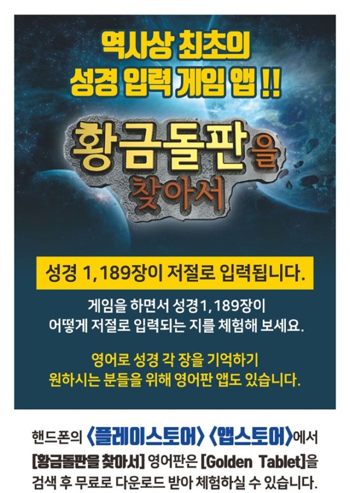 4. 경기종목: 모바일앱 '황금돌판을 찾아서'(한글판) 창세기편 (구글스토어 무료 다운로드)
