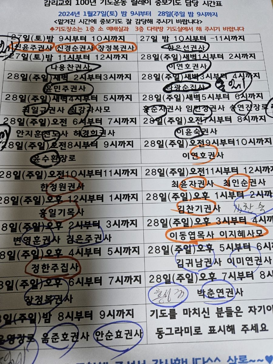 하는데 그 시간 전 2시 담당 권사님이 기도 하시고 가시고 3시 담당 집사님이 기도하시고 계셔서 감사하게 되었다.