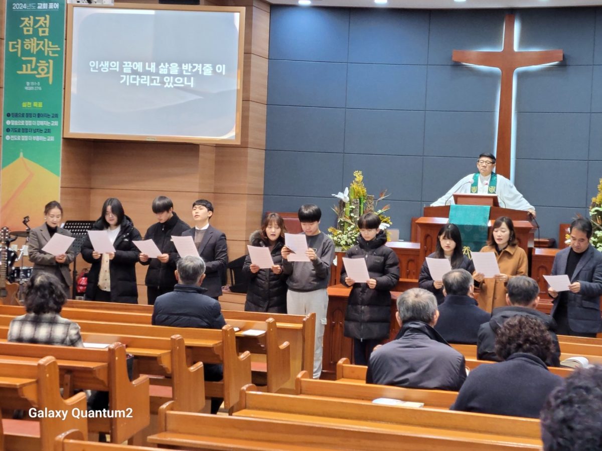 이번에도 3명 1부 반주자, 드럼, 또 성가대 봉사자 3명에게 장학금을 주었다.
