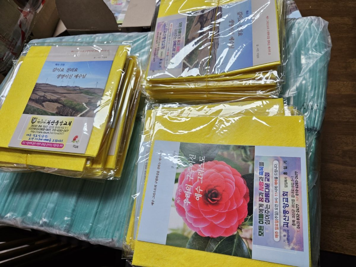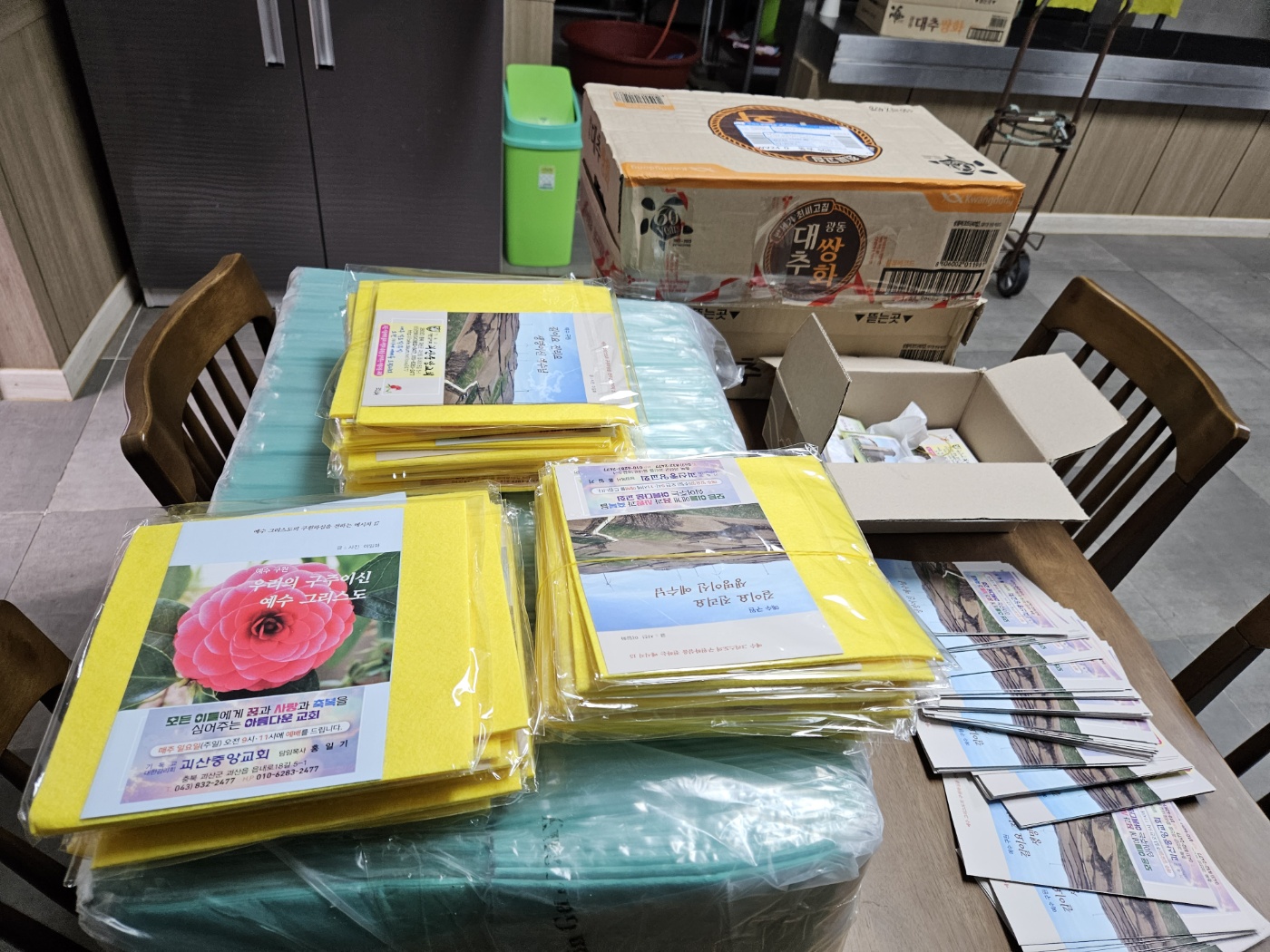전도 용품을 전하는 데 오늘은 배가 많이 내려서 전도를 못나가고 대신