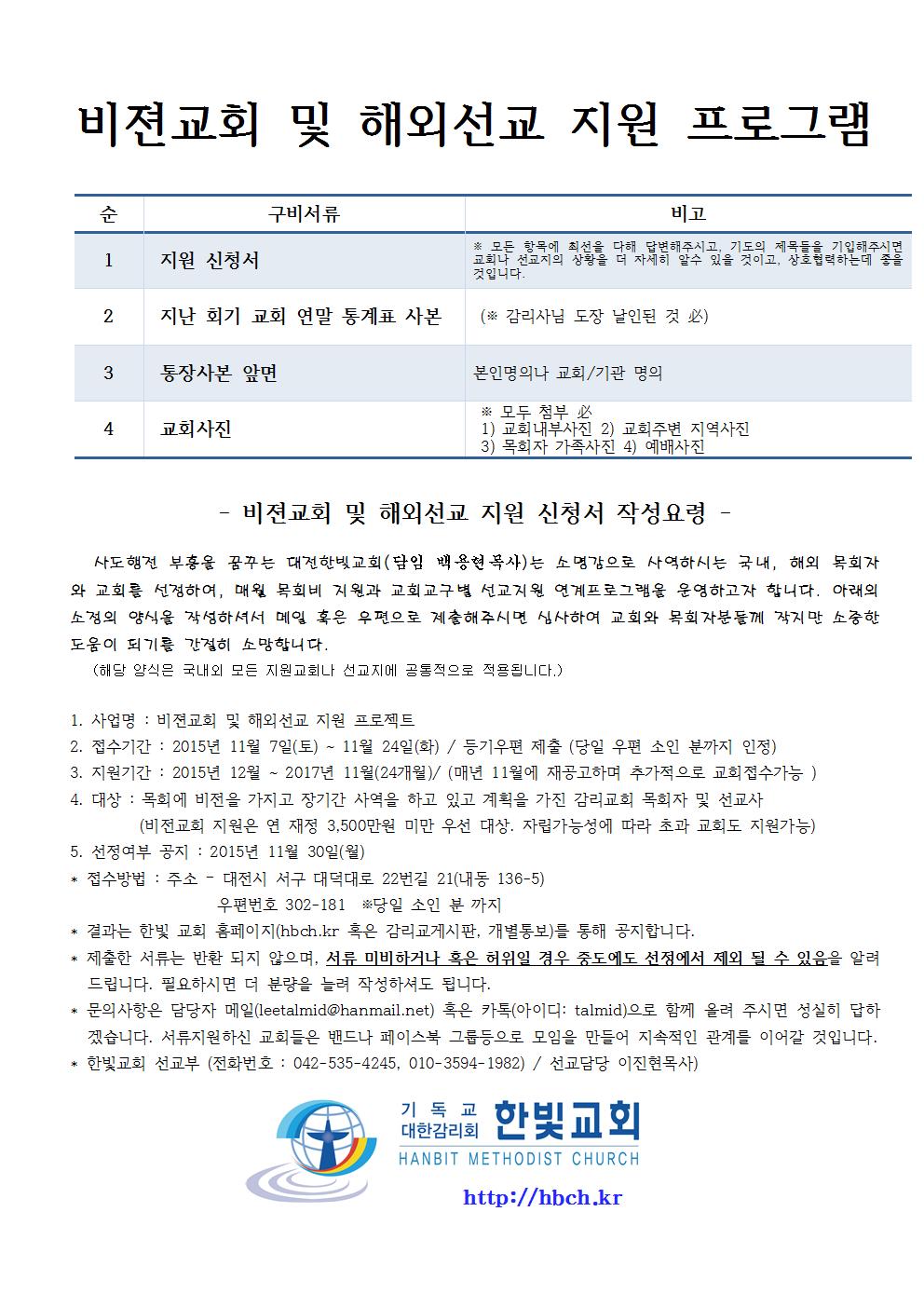 대전한빛교회 국내, 해외 비젼교회 및 해외선교 지원 프로그램 공지